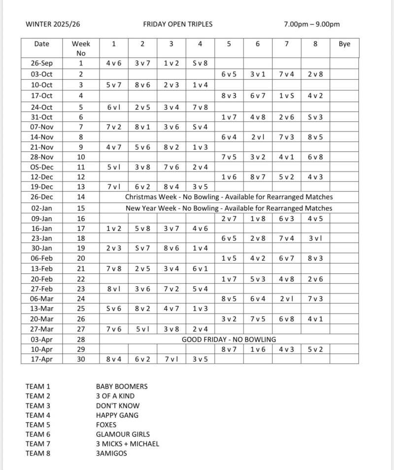 THURSDAY OPEN TRIPLES 9.45am to 12pm